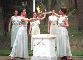une cérémonie speciale a lieu a Olympie. La flamme est alors